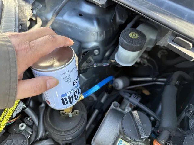 コンプレッサーオイル充填(ワコーズパワーエアコン、蛍光剤入りコンプレッサーオイルなど)
